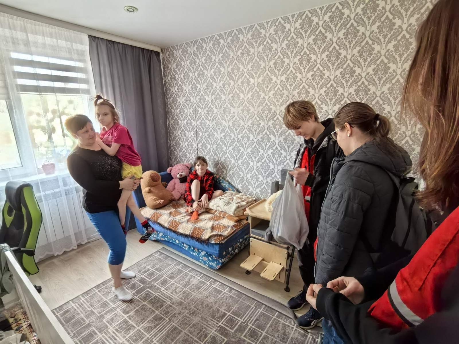 волонтёры Красного Креста пришли с пасхальными подарками к своей подопечной девочке Ане.
