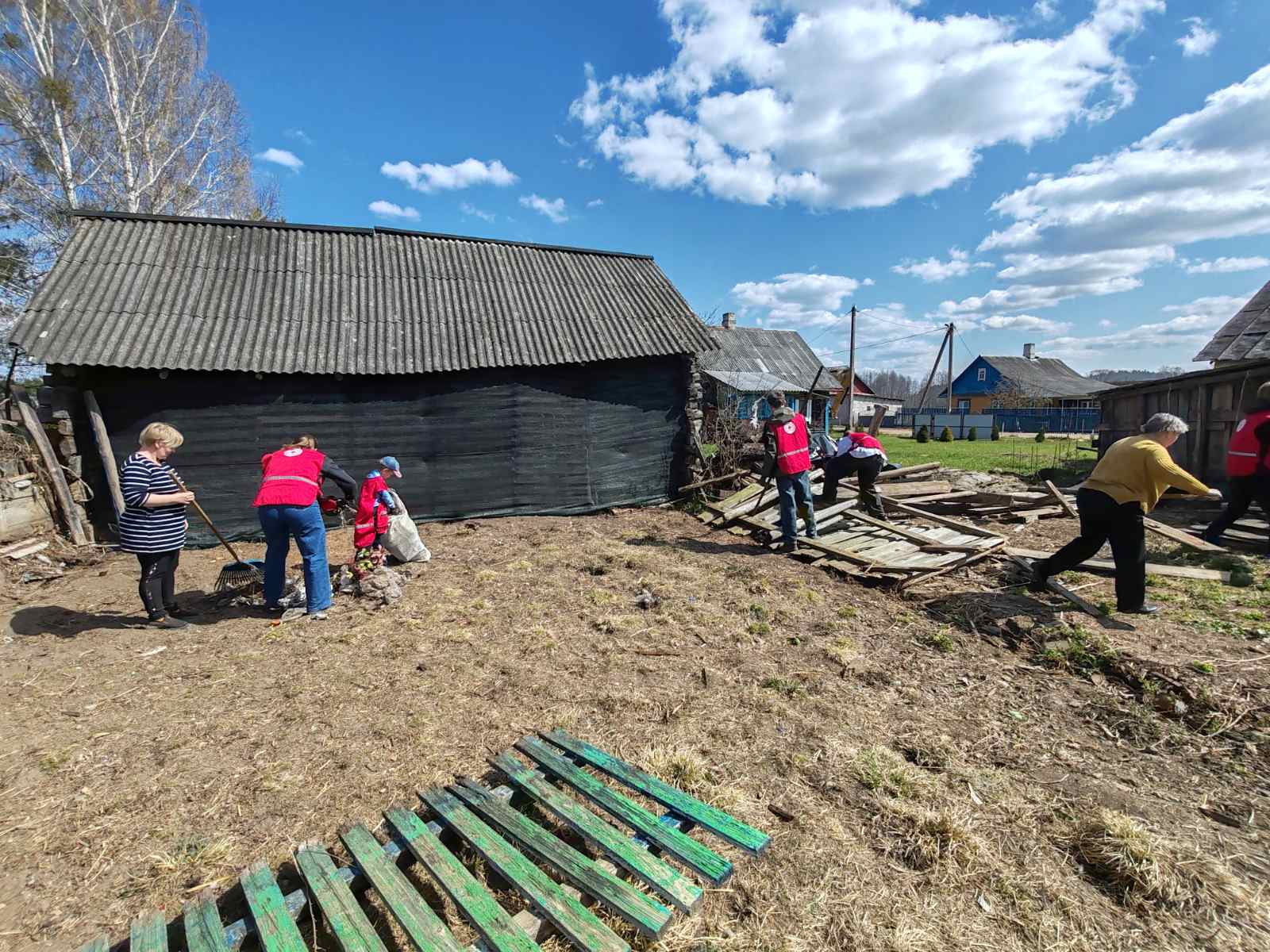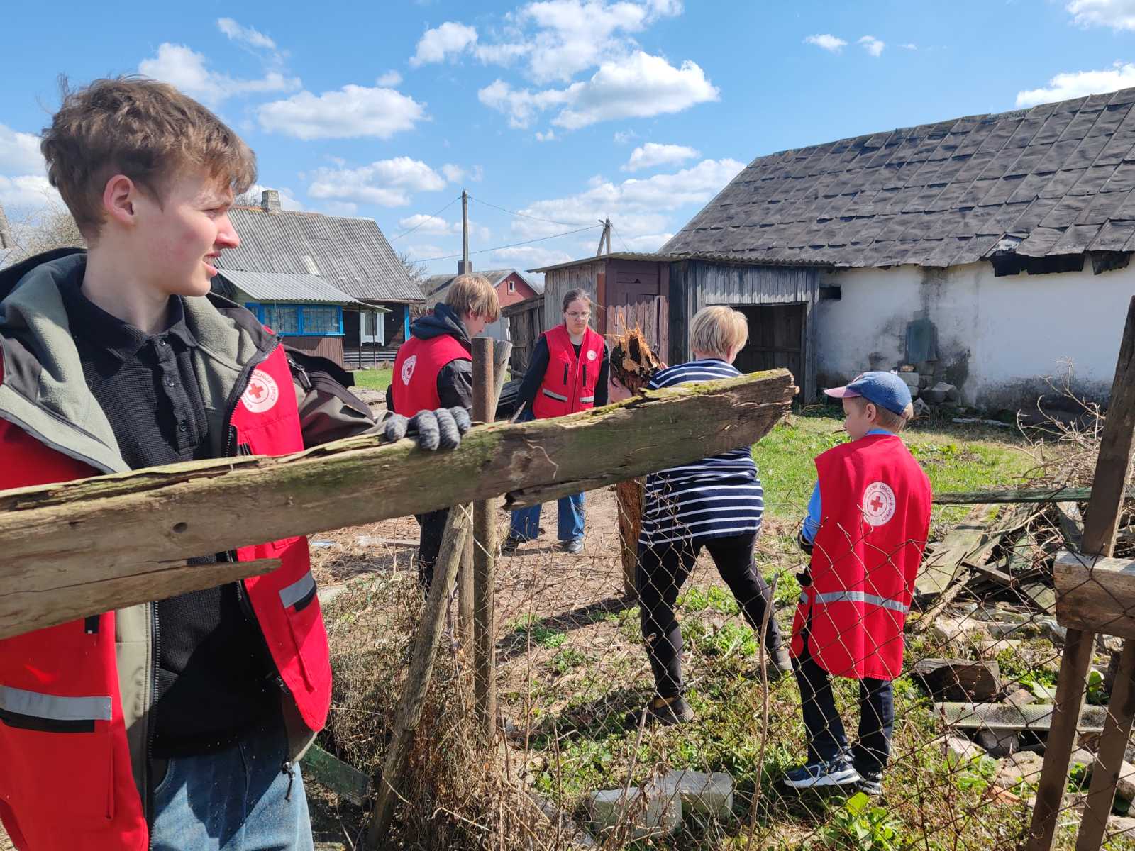 Непростым выдался день у наших волонтёров из группы 42э. За помощью к нам обратились сотрудники Жировичского ЦСОН. Надо помочь навести порядок во дворе бывшей сотрудницы нашего колледжа, 90-летней одиноко проживающей Анне Исааковне Лебёдко. Бабушка что могла сделала сама, но многое ей уже не под силу. Ребята сначала поздравили бабушку с Пасхой и подарили продуктовый набор, чем очень обрадовали пенсионерку. А после с азартом взялись за работу Никогда ещё так много не делали волонтёры: собрали на кострище сухую растительность, уложили в яму для утилизации шифер, разобрали несколько секций ветхого забора и аккуратно сложили доски, собрали пластиковый мусор на участке и перенесли тяжёлые клетки для кроликов на более подходящее место. Удивительно, откуда у троих мальчишек и девчонки столько энергии? Может это весна? А может молодость? А может всё решила помощь юного волонтёра, хозяйского правнука Женьки?
