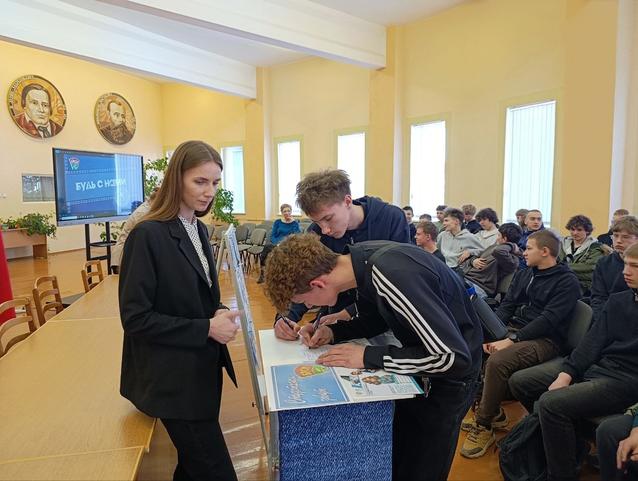2 апреля 2026 года в нашем колледже дан старт масштабному промопроекту «Выбираем студотряд». Мероприятие, направленное на популяризацию студенческих отрядов, прошло в формате живого диалога со студентами. Встречи проходили на переменах, что позволило охватить максимальное количество учащихся без ущерба учебному процессу. В зале заседаний была развернута интерактивная информационная площадка. Перед учащимися выступили: Секретарь ПО ОО «БРСМ» Борисевич В.И., заместитель директора по воспитательной работе Ковалевская Т.А. Спикеры подробно рассказали молодым людям о видах отрядов (строительные, сельскохозяйственные, педагогические, сервисные, экологические и другие), а также о тех широких возможностях, которые открывает участие в трудовых проектах. Живое общение и возможность задать вопросы напрямую организаторам вызвали большой интерес и неподдельный отклик у аудитории.