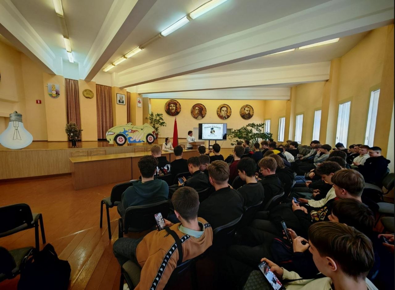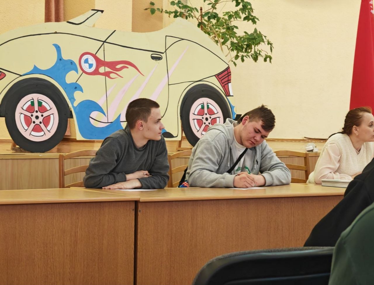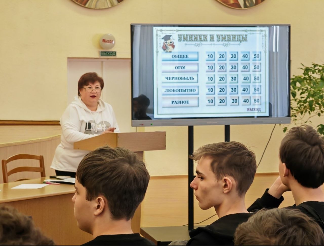16.04.2026 между двумя группами механиков и электриков прошёл интеллектуальный турнир «Мирный атом». В начале ребята посмотрели документальный фильм об аварии на Чернобыльской АЭС, а затем показали свои знания, умение докапываться до истины и логику рассуждений в ходе турнира. В итоге с небольшим отрывом победили механики. Орден большого умника завоевали Абрамович Даниил (77м) и Василевский Кирилл (43э), а Орден малого умника достался Белому Артёму (77м) и фотографу мероприятия Симаковичу Артёму.