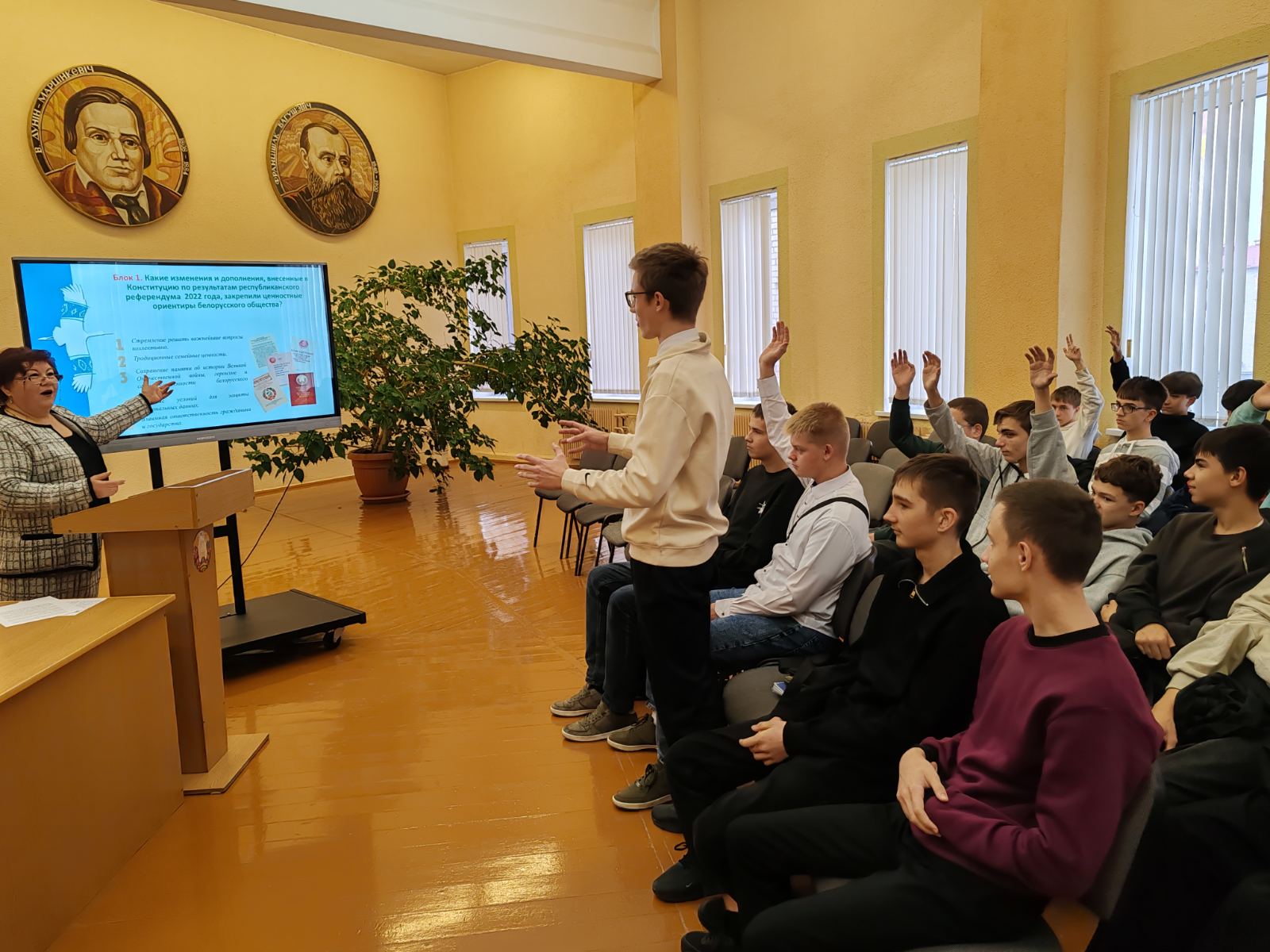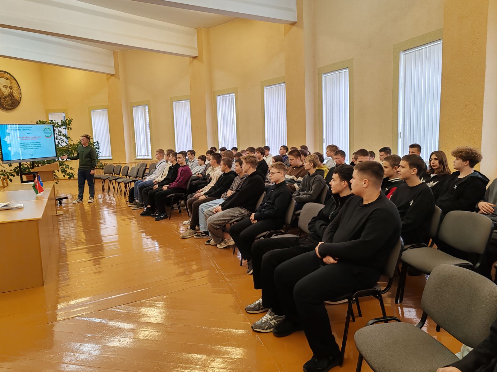 Октябрьское заседание Школы активного гражданина (образовательного проекта ШАГ) на тему «Быть достойным гражданином Республики Беларусь –значит чтить законы своего государства и брать на себя ответственность за будущее своей страны» прошло в нашем колледже 23.10.25. Ребята актуализировали свои знания о системе органов власти в нашей стране, систематизировали информацию об изменениях в Конституции Республики Беларусь, принятых на референдуме 2022 года. Высказали мнение о том, что значит быть патриотом своей страны и её достойным гражданином. О важности соблюдения законов и ответственности за судьбу страны учащимися рассказал гость, юрист колледжа Александр Иванович Астапчик.