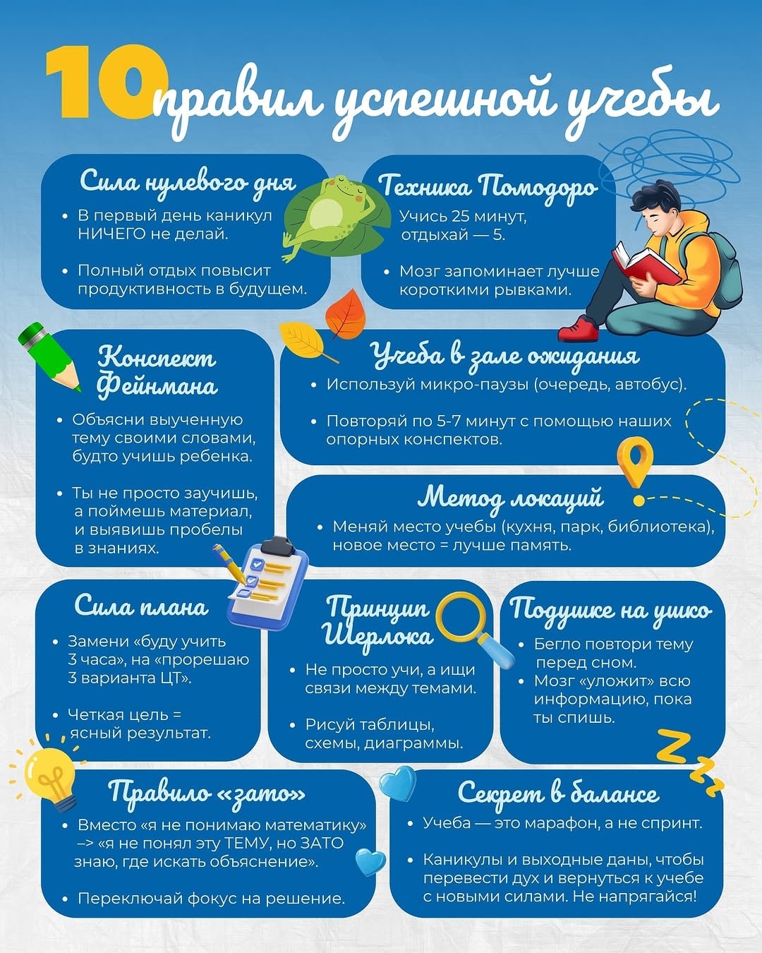 7.Если во время экзамена чувствуешь как волнение захлестывает тебя, остановись на секунду. Не забывай о том, что ты учил, поэтому у тебя всё обязательно получится!!!