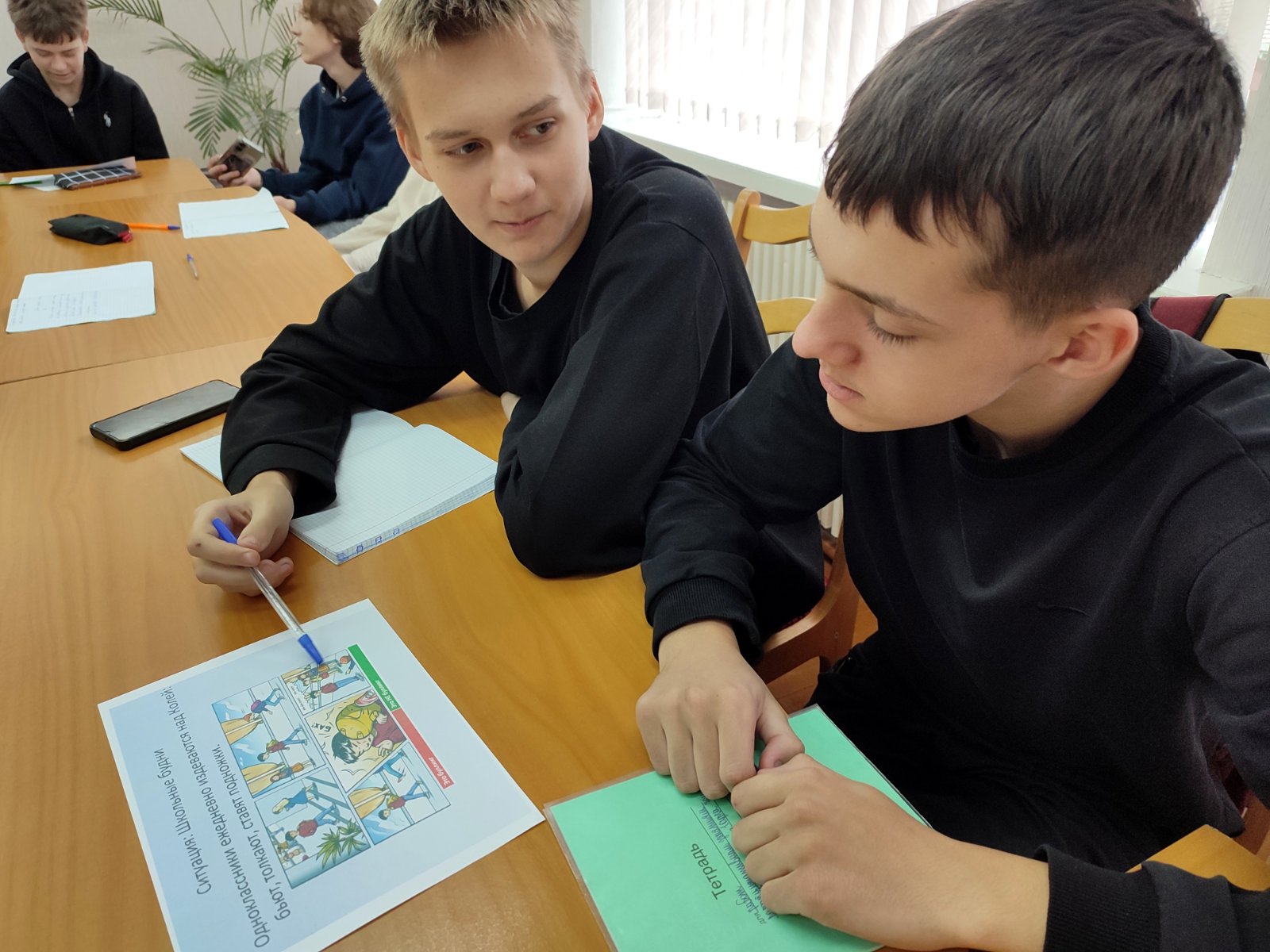 В рамках декады буллинга и кибербуллинга педагог-психолог колледжа Борисевич В. И. провела в группах 77м и 78м психологический уоок "Молодежь против буллинга". В ходе анализа ситуационных задач учащиеся вспомнили виды буллинга и основные методы борьбы с ним. Педагог-психолог ознакомила участников урока с правовыми и психологическими последствиями буллинга.
